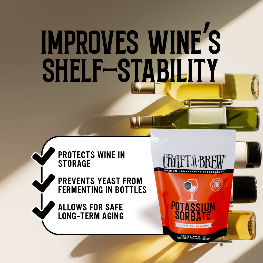 Stabilize your mead or wine before backsweetening with Potassium Sorbate, a yeast growth inhibitor that prevents renewed fermentation when adding honey, fruit, or sugar. This allows you to achieve a sweeter, more controlled finish without the risk of unwanted carbonation or pressure buildup in bottles.